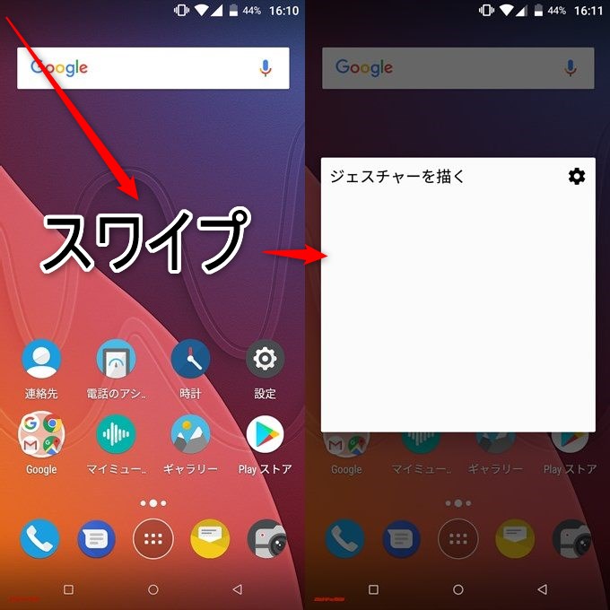 ▼ジェスチャー機能の入力画面はディスプレイの左上からスワイプダウンで引き出せます↓