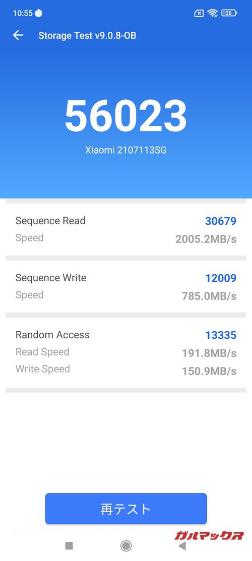 ▼ストレージ速度は読み込みが2005.2MB/s、書き込みが785MB/sでとっても速い↓