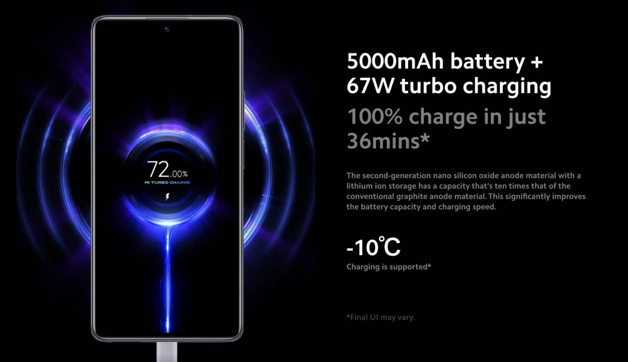 ▼バッテリー容量は5,000mAhで大容量タイプ。ビックリするのは充電仕様。なんと120Wの超急速充電に対応してるんよね。様々なセーフティー機能も搭載していて発表時にめちゃくちゃ安全性をアピってた。↓