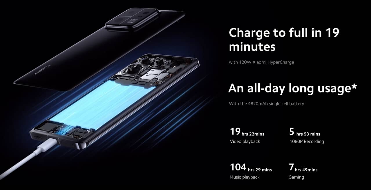 - 120W充電対応の4,820mAhバッテリー