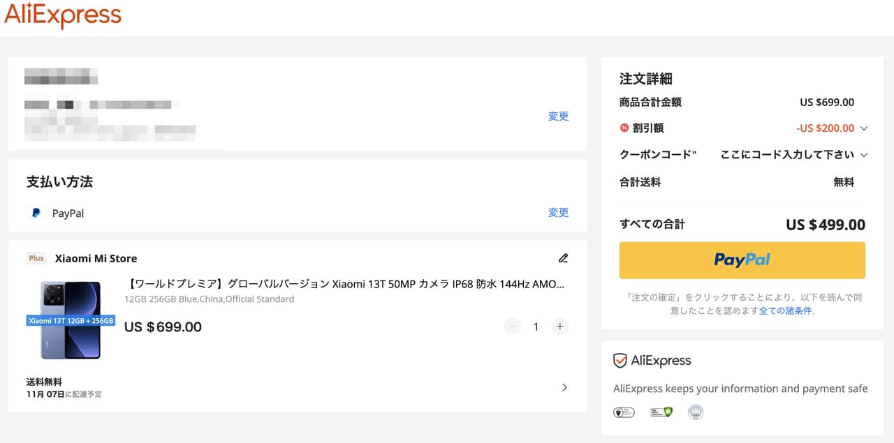 じゃあ、AliExpressなど海外からの個人輸入だとライカ版のXiaomi 13Tが買えそうな気もしたんですが、AliExpressの中の人曰く、配送先が日本の住所の場合はライカじゃない版が発送されるそうです。ライセンス絡みなので徹底しているっぽいですねー。