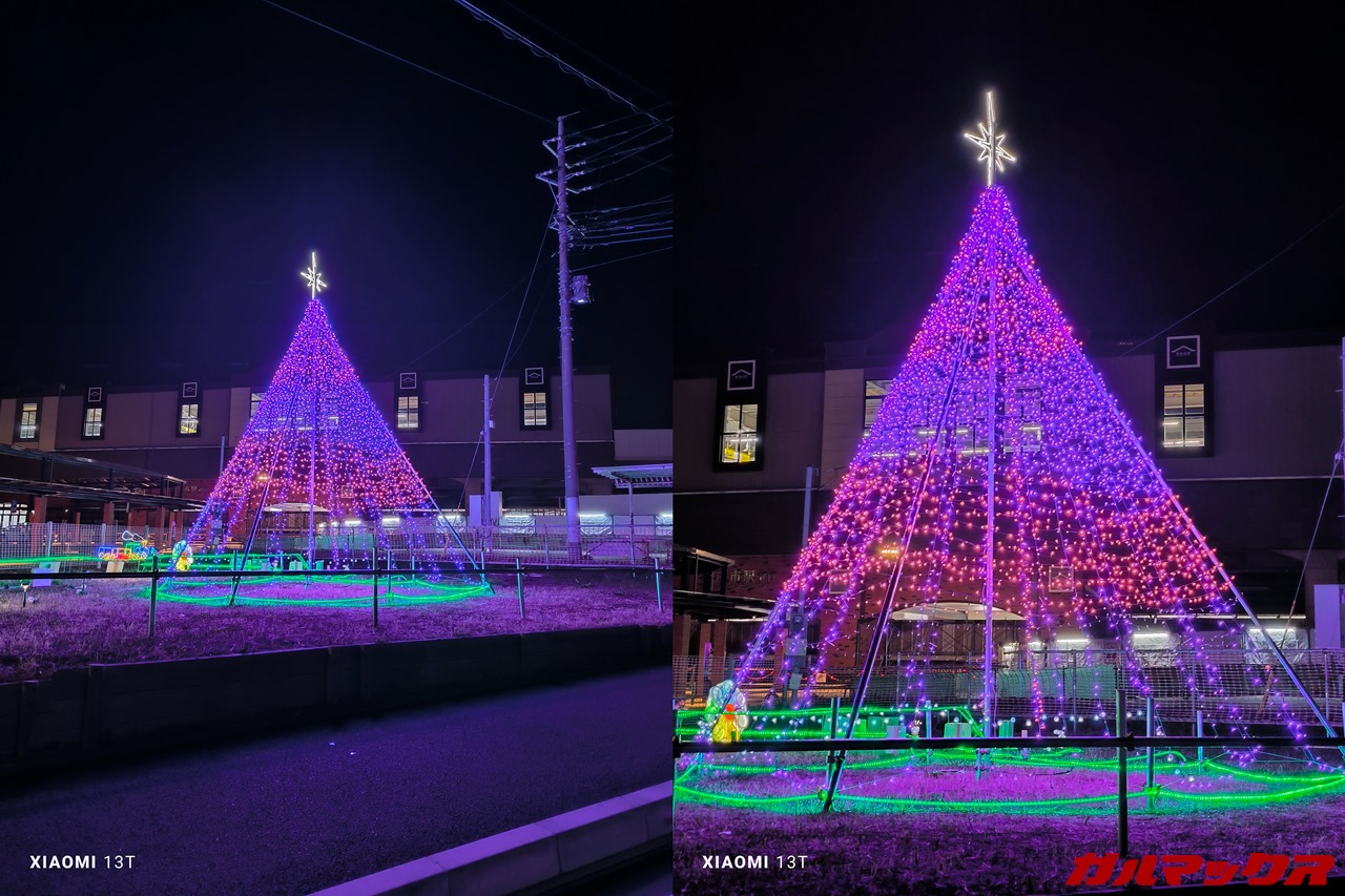 ▼一方で超広角カメラはメインと結構色合い変わっちゃってギャップをすげー感じてしまう。左がメイン、右が超広角でどちらも夜景モードで撮影しています。↓