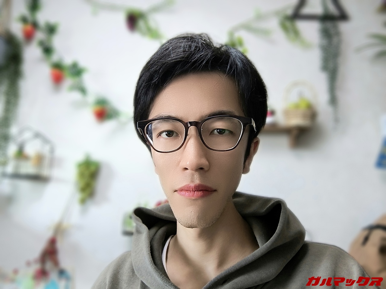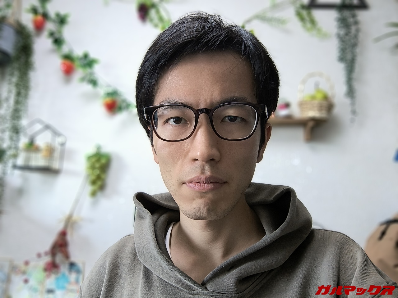 ▼自撮り撮影は解像感や色合いはかなり忠実!写真はノーマルですが、背景ぼかしや美肌モードももちろん対応。↓