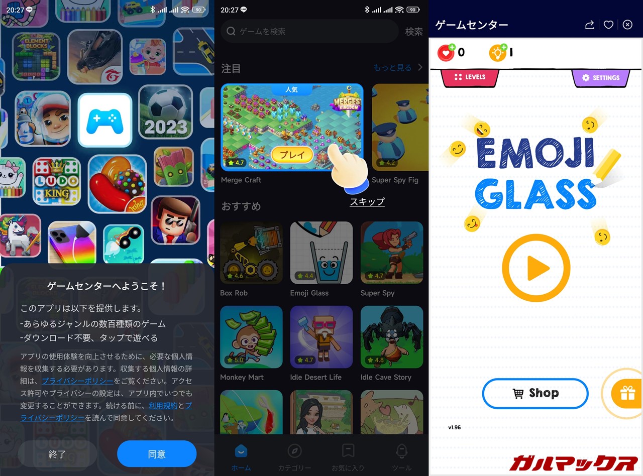 • ゲームセンター:ミニゲーム系アプリがインストール不要で遊べる