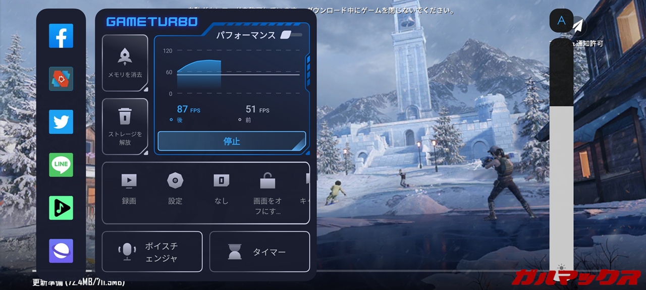 ▼ちなみにゲームターボ機能のUIはこんな感じです。↓