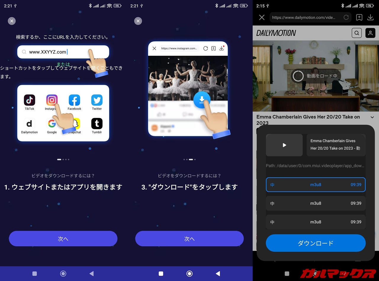 ▼動画サイトのURLをブチ込めばブラウザが開いて、そこからダウンロードが出来るというのもGood。プリインアプリでこれ出来るってスゲーよね。↓