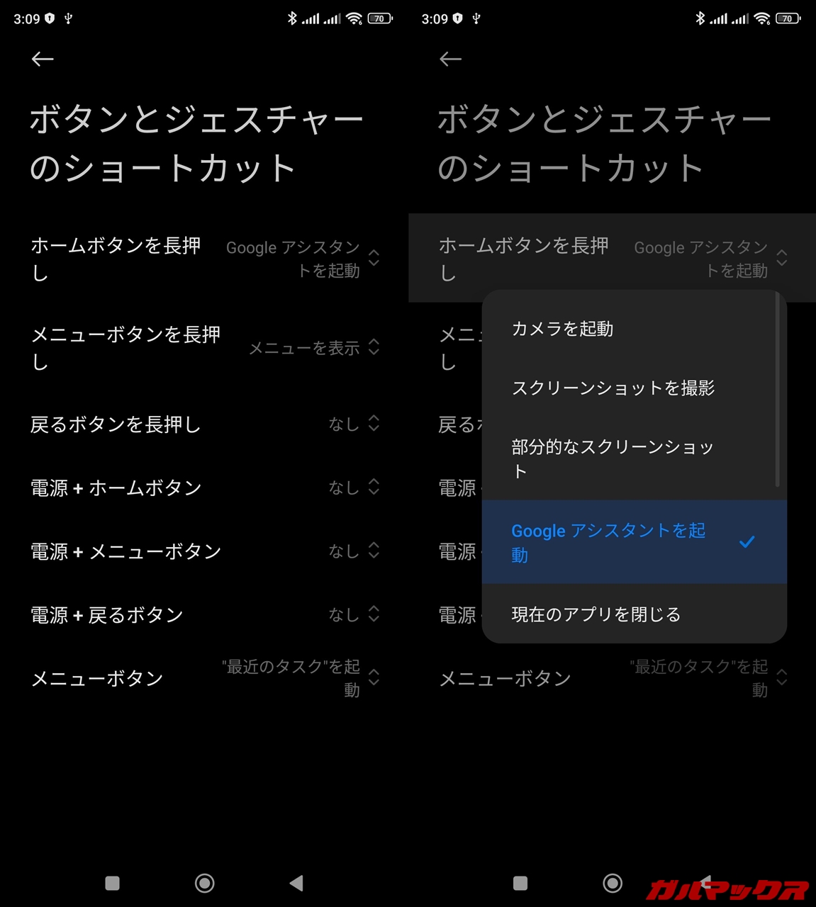 ▼一応3ボタンなりの長所もあって、長押しや同時押しでスクショやフラッシュライトなどの機能に即アクセスできるのが結構便利。筆者はホーム長押しでスクショ操作にしとります。↓
