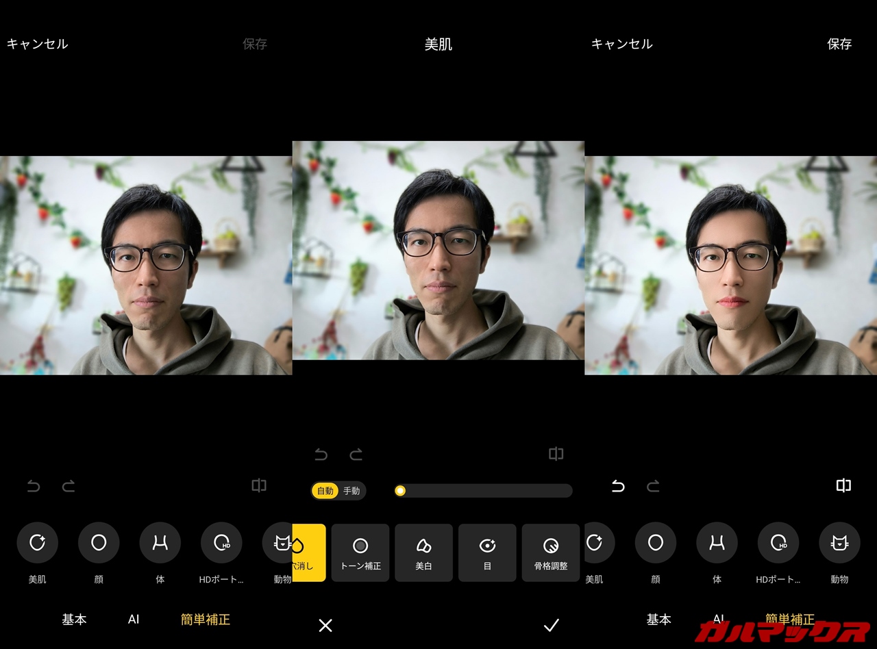 ▼そしてギャラリーアプリからバッキバキに編集加工することも可能。結構項目多くてガチってて笑った。とりあえず全部ガッツリ調整してみよう。↓