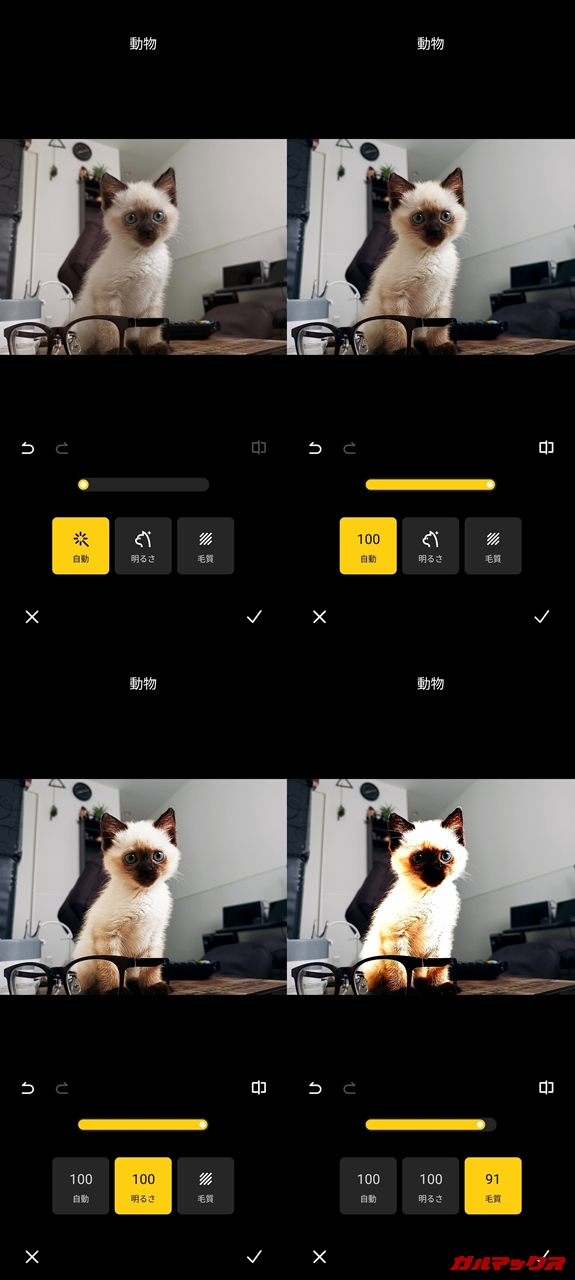 ▼ちなみにこの編集なんだけど、犬やネコの写真加工も対応しとります。色合いとかツヤとか輝き(?)とか変わる。ほどほどが丁度いいね(`・ω・´)。筆者が面倒見てた子猫で口直しにどうぞ。↓