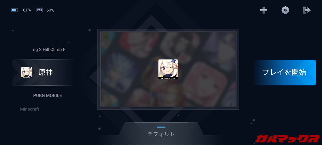 ▼原神もこんな感じでした。デフォルト画質は中。ワープを繰り返したり、大技的なやつをブッ放してもFPSが59を下回らず非常に安定しとる(検証の範囲内ではあるけど)。