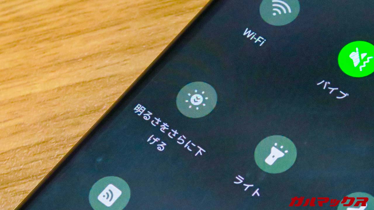 ▼筆者が知る限りAndroid 13からは「画面輝度を限界以上に下げる」という機能がありまして、名前の通り最低輝度よりもさらに暗くすることができます。こういうやつ。↓