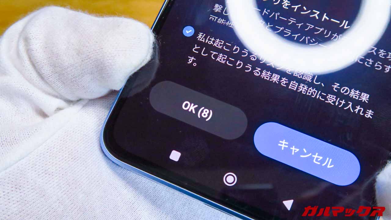 ▼MIUIで一番の欠点はこの権限の取得で出てくる警告画面。警告するまではいいとして、許可やOKで進むには10秒も待たないといけません。Xiaomi触ってきた人ならこのダルさがよくわかるはず。↓