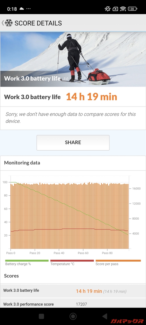 ちなみにPCMarkでのバッテリーテスト結果はベンチマークの項目に掲載しているが、14時間19分と良好な結果。ディスプレイサイズが小さく解像度もHDクラスなのでXiaomi 14 Ultraよりもバッテリー持ちが良い結果となった。