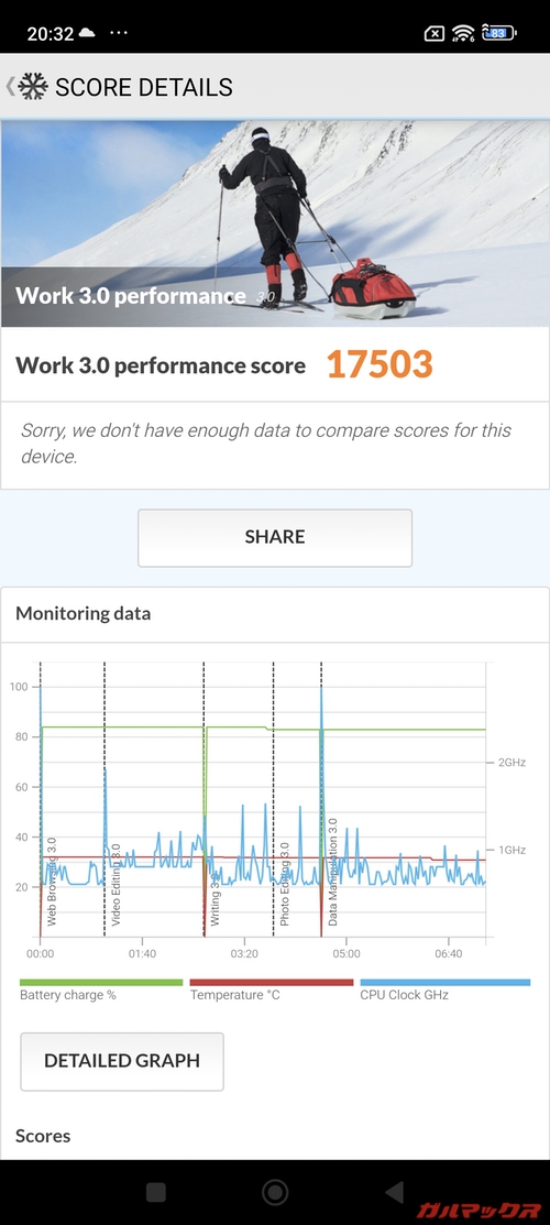 ベンチマーク中はCPU・GPUをぶん回すからSoCはアッチッチになるんだけど、2回目と3回目はベンチ中に温度が低下しているのがグラフで分かるはず。たぶんこれサーマルスロットリング(熱で壊れないように性能を制限するやつ)が発生してる。