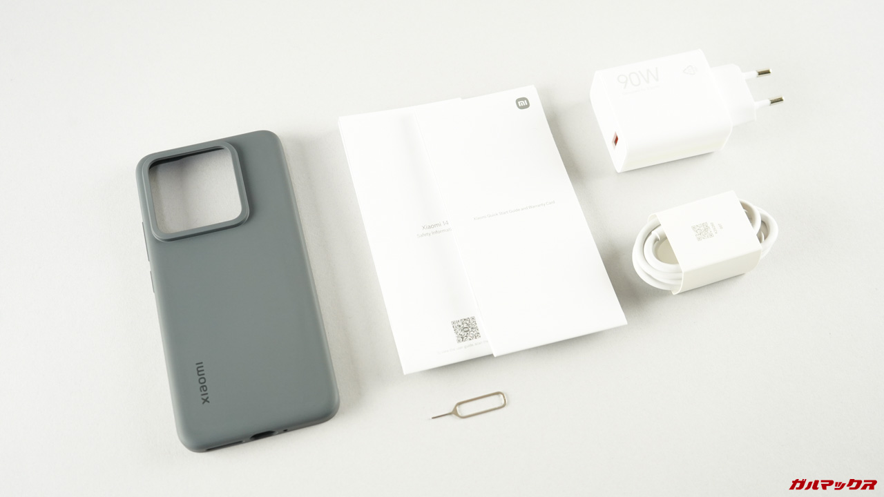 ▼まずはパパッと開封。Xiaomi 14の付属品はこんな感じ。↓