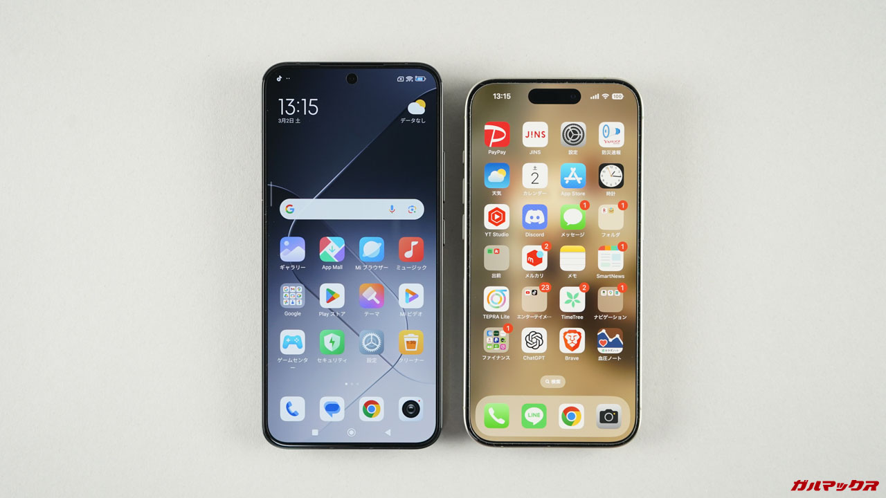 ▼サイズ感は普段使ってるiPhone 15 Proと似た感じ。Xiaomi 14はちょっと縦が長い。↓