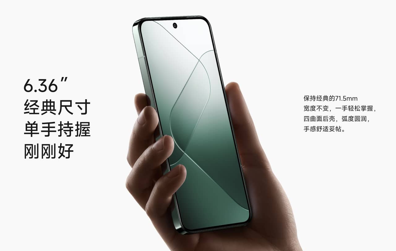 上位モデルのXiaomi 14 Proは6.73型の比較的大きめなディスプレイを搭載していますが、Xiaomi 14は6.36型ディスプレイを採用することでProよりも小型な筐体となってます。XiaomiはXiaomi 14の6.36型を黄金サイズとアピってます。