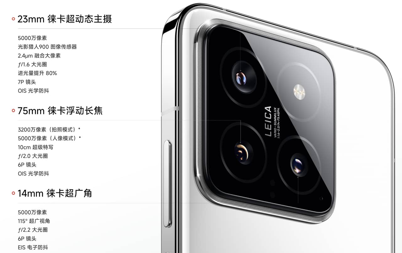上位モデルのメインカメラは6枚羽根による1024段階の可変絞りに対応していますが、Xiaomi 14では省かれてます。