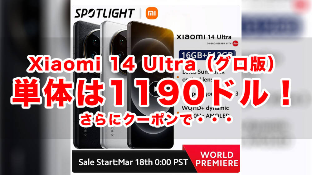 Xiaomi 14 Ultra(グロ版)単体は1,199ドル。さらにクーポンで・・・