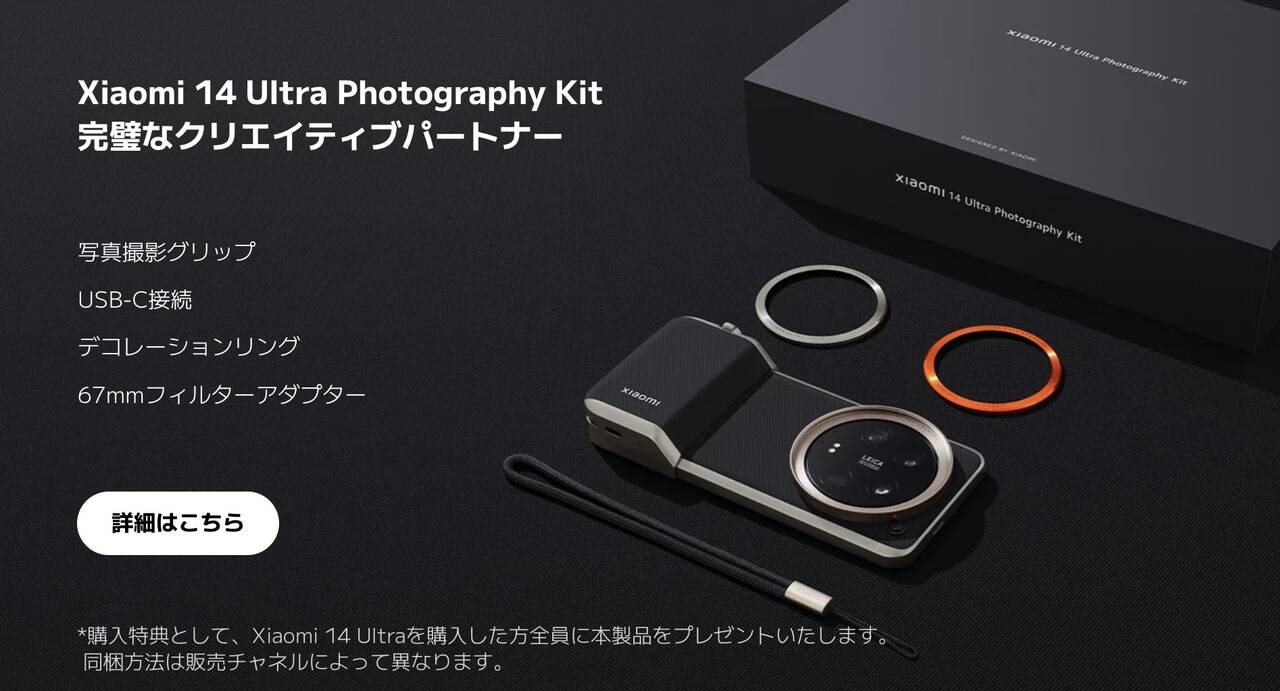 ▼Xiaomi 14 Ultraの日本版は購入者全員に22,000円のPhotography Kitが付属する。ぶっちゃけグリップ込みで完成な感じなので、これ込みで199,000円なら安い。↓
