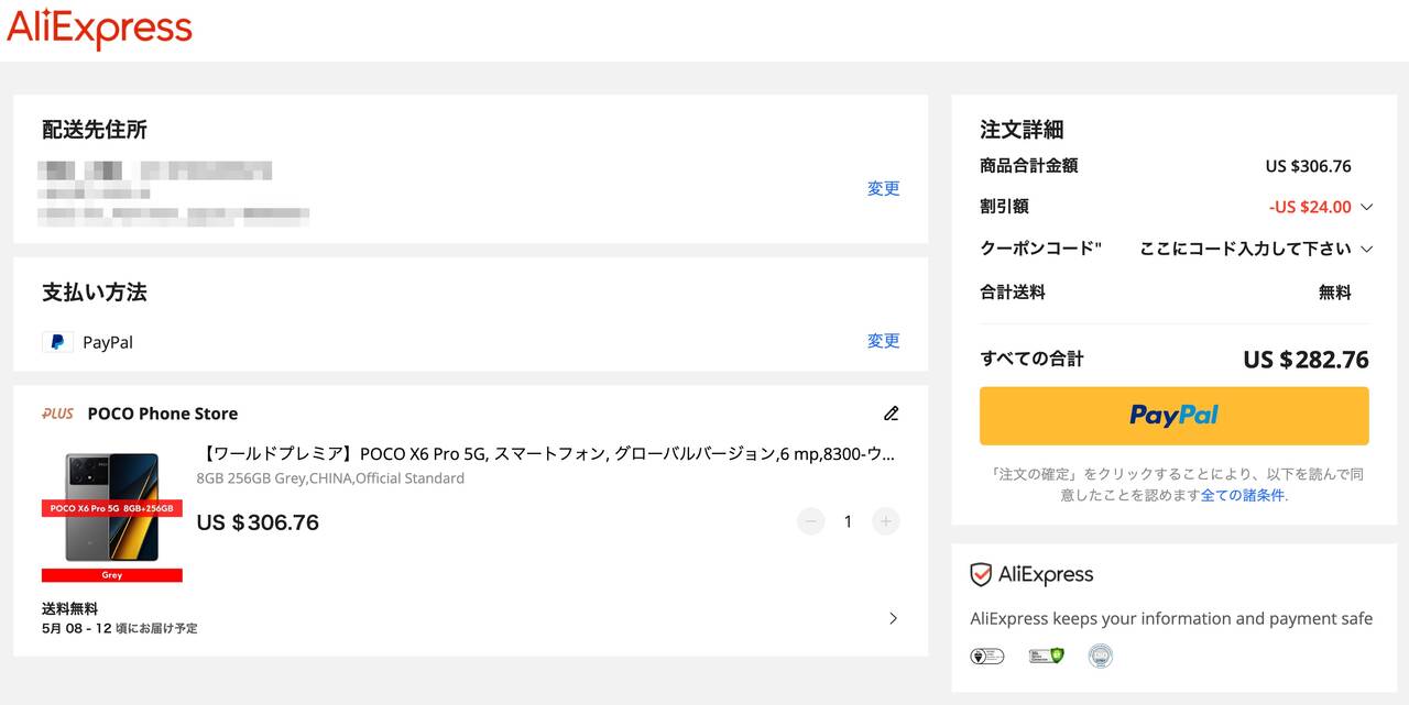 ▼[AliExpress]ストアクーポン適用で282.76ドル!↓