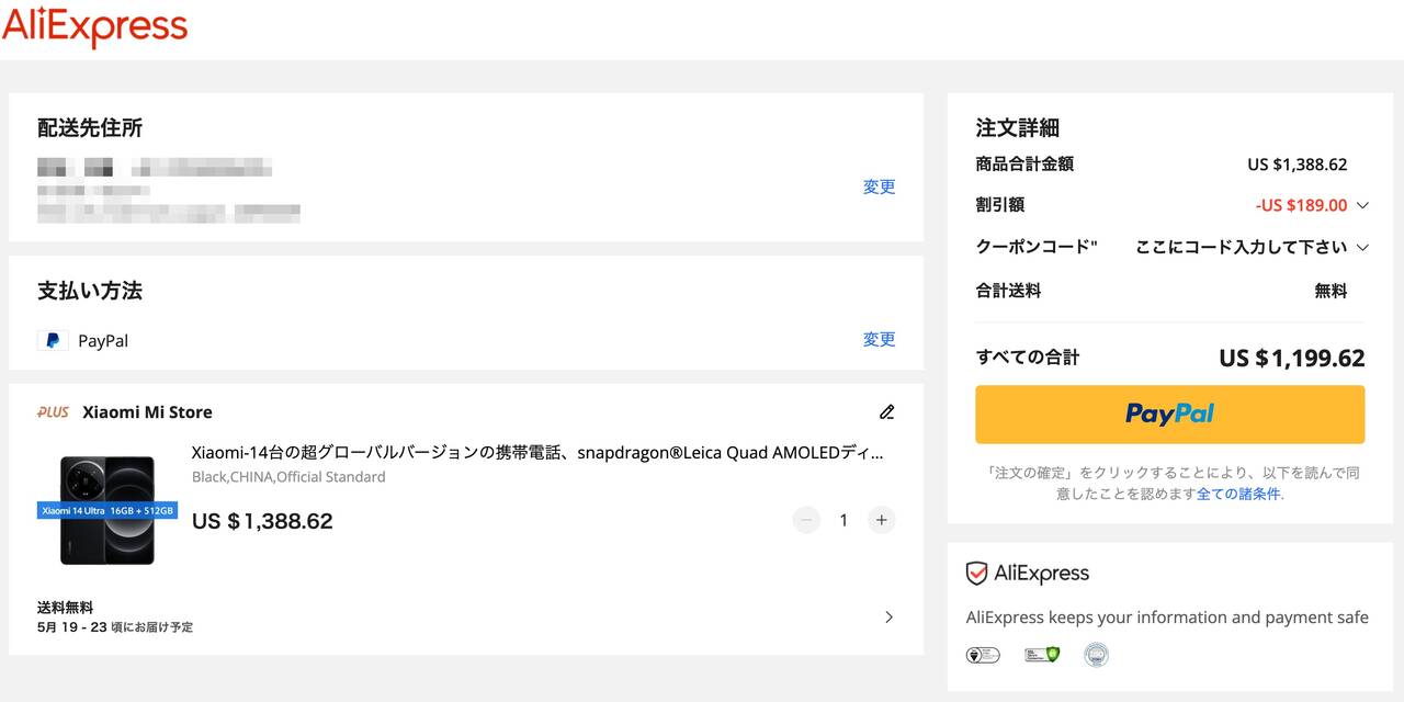 ▼[AliExpress]ストアクーポン適用で1199.62ドル!↓