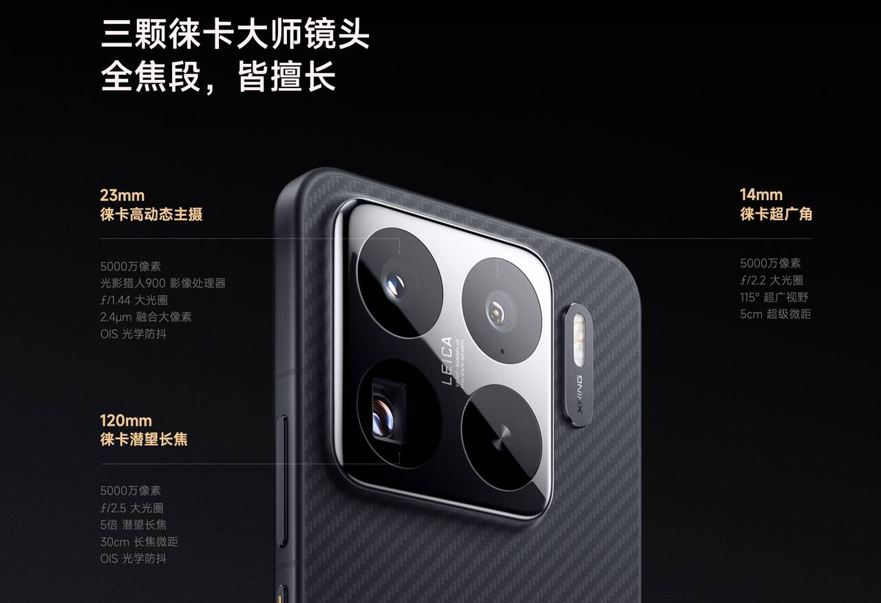 カメラは光影猎人900センサーを採用した5,000万画素の25mm広角カメラ、115度の広い範囲を撮影できる5,000万画素の14mm超広角兼マクロカメラ、30cmまで近づいて撮影できるテレマクロ対応の5,000万画素120mm光学望遠カメラの3カメラ構成。もちろんライカ共同開発!