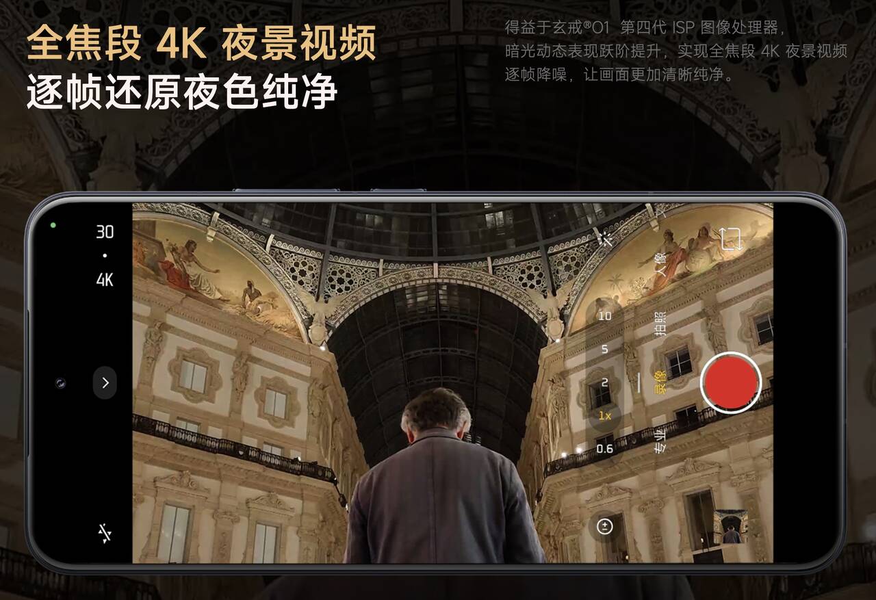 ▼またXRING O1は第4世代ISPを搭載していて暗所でのダイナミック・パフォーマンスが劇的に向上。光が昼より少ない夜景の動画撮影もノイズが少ないキレイな映像を撮れるとのこと!↓
