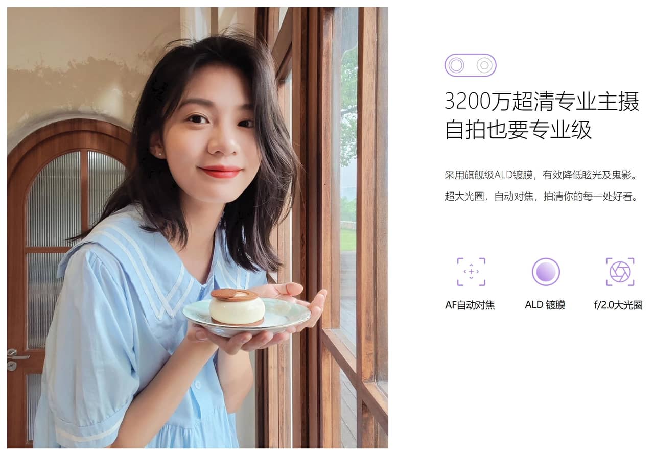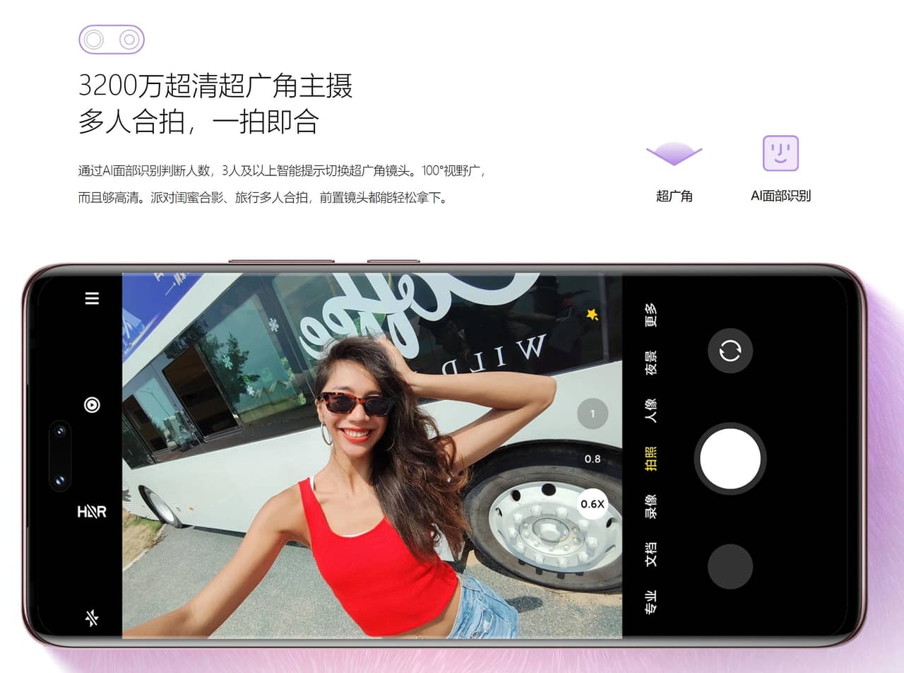 ▼100°の広範囲自撮りができるため風景込みでの撮影から友達との集団自撮りもお手の物!しかも画素数が3,200万画素とインカメにしては極めてハイスペック。気軽に高精細な自撮り撮影が楽しめそう!↓