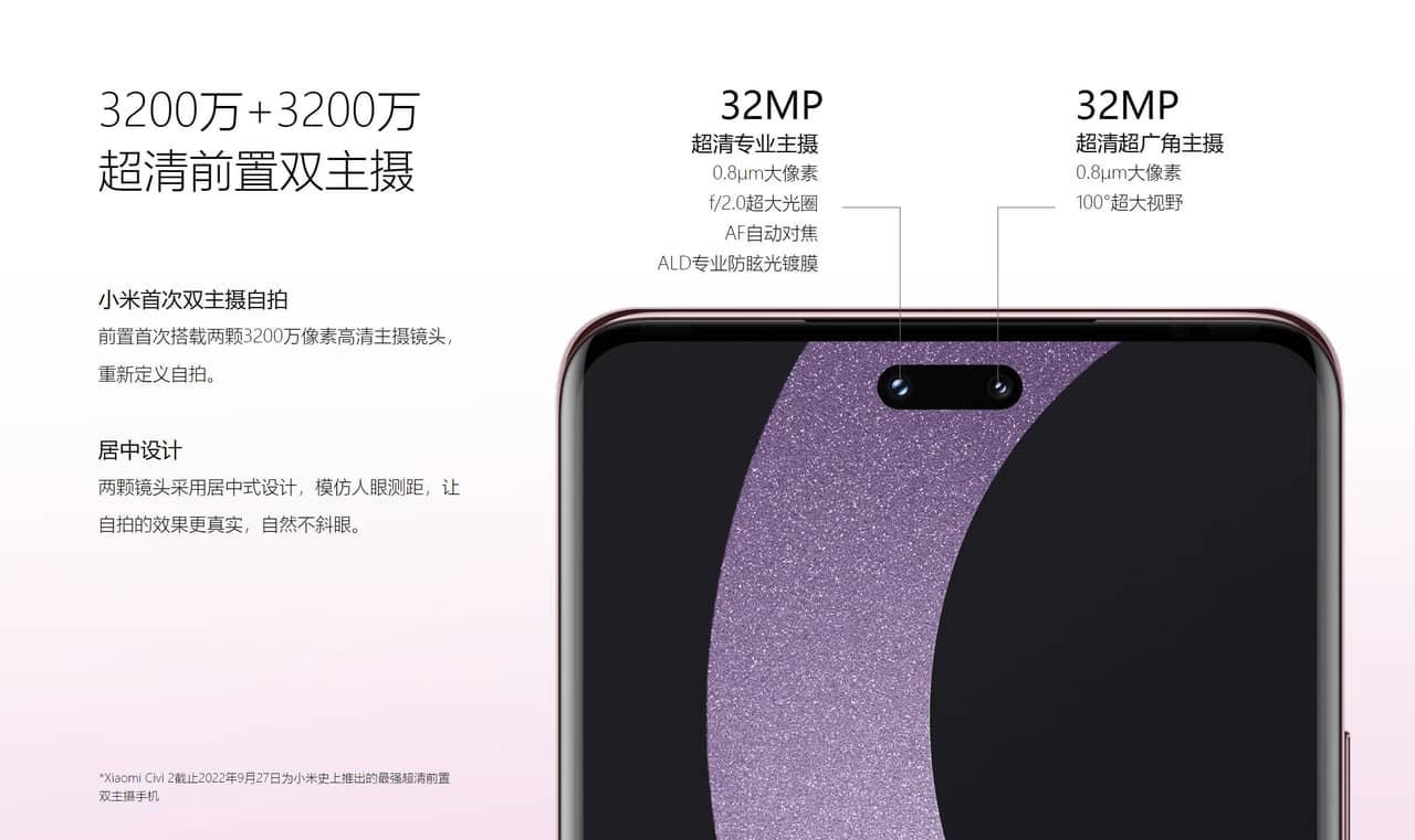 Xiaomiの新型スマホ「Xiaomi Civi 2」が登場!女性向けをコンセプトとしたXiaomi最新モデル。Snapdragon 7 Gen 1搭載のほか、すんごい自撮りに特化したスペックになっている面白いスマホだッ!