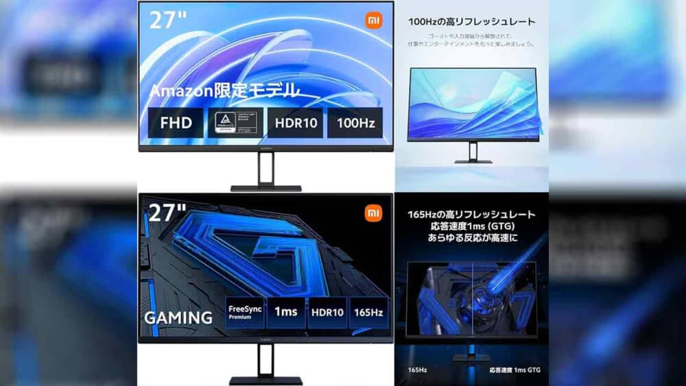 Xiaomi新型のモニター「G27i」「A27i」が日本向けに正式発表されました!特にリフレッシュレート165Hz+応答速度1ms対応のゲーミングモデルG27iが2万円以内ってスゲーコスパ良いんだが!