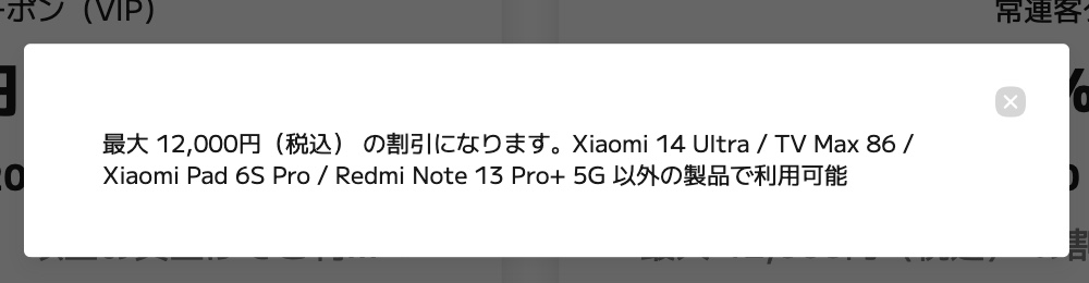 Xiaomi Japanのクーポン確認したらXiaomi 14 Ultra、Xiaomi Pad 6S Pro、Redmi Note 13 Pro+ 5Gの文字が