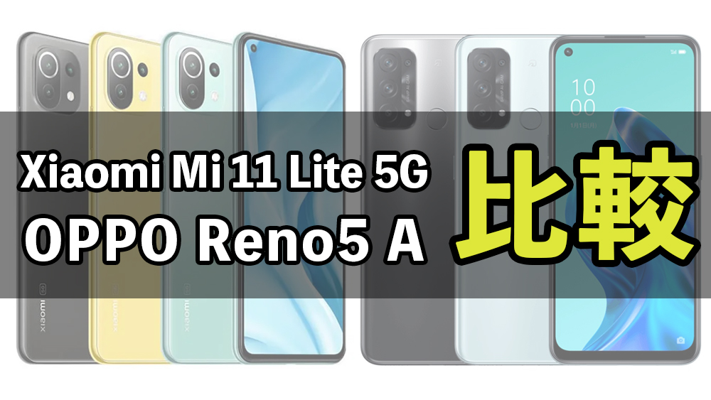 「Xiaomi Mi 11 Lite 5G」と「OPPO Reno5 A」の違いを比較