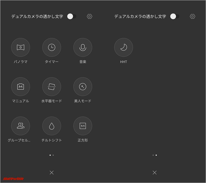 ▼撮影モードは少ない印象です。上部のデュアルカメラの透かし文字をオンにすると写真にXiaomi Mi A1の文字列が挿入されます。↓