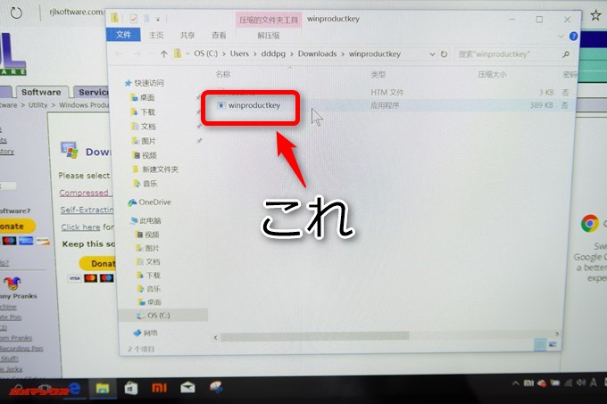 ▼ダウンロードしたファイルを解凍して[winproductkey]をダブルクリック。↓