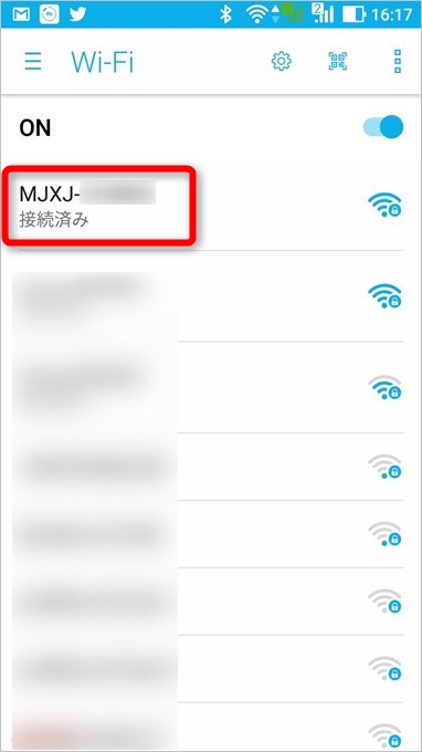 ▼アプリインストール後、Xiaomi mijia 3.5Kの本体の電源を入れてWi-Fiボタンを押すとスマートフォンのWi-Fi設定画面にMJXJ・・・の接続先が表示されるので、接続しよう。↓