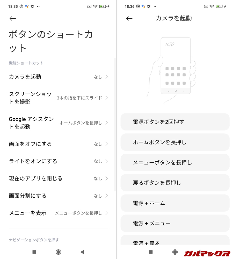 ▼画面内ナビキーをオンにしている場合、そのナビキー自体にショートカットを組むことができるのもMIUI 12ならではな魅力。普通に押すだけでなく「長押ししたときの挙動を設定できる」んです。↓