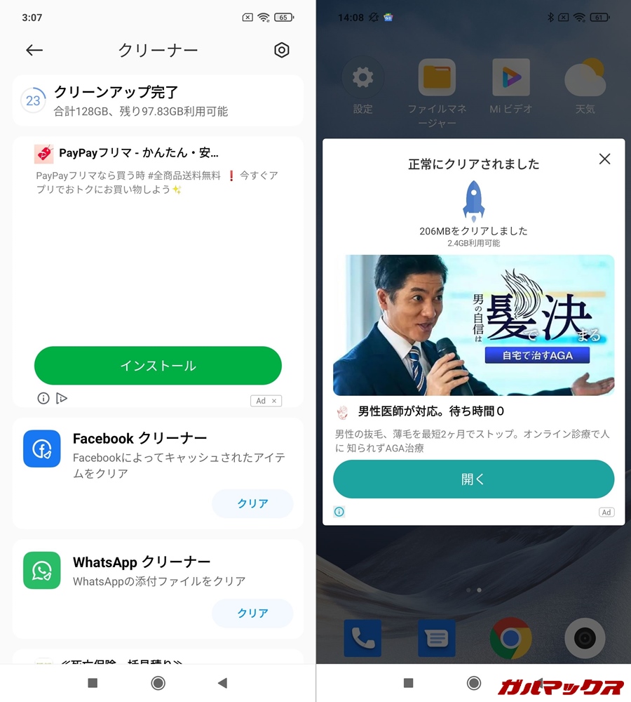 純正アプリに広告が仕込まれているのは人によってはかなり気になるかも。Xiaomiのスマホのコスパの良さは広告費で賄っているから?とも考えられますが(´・ω・`)。