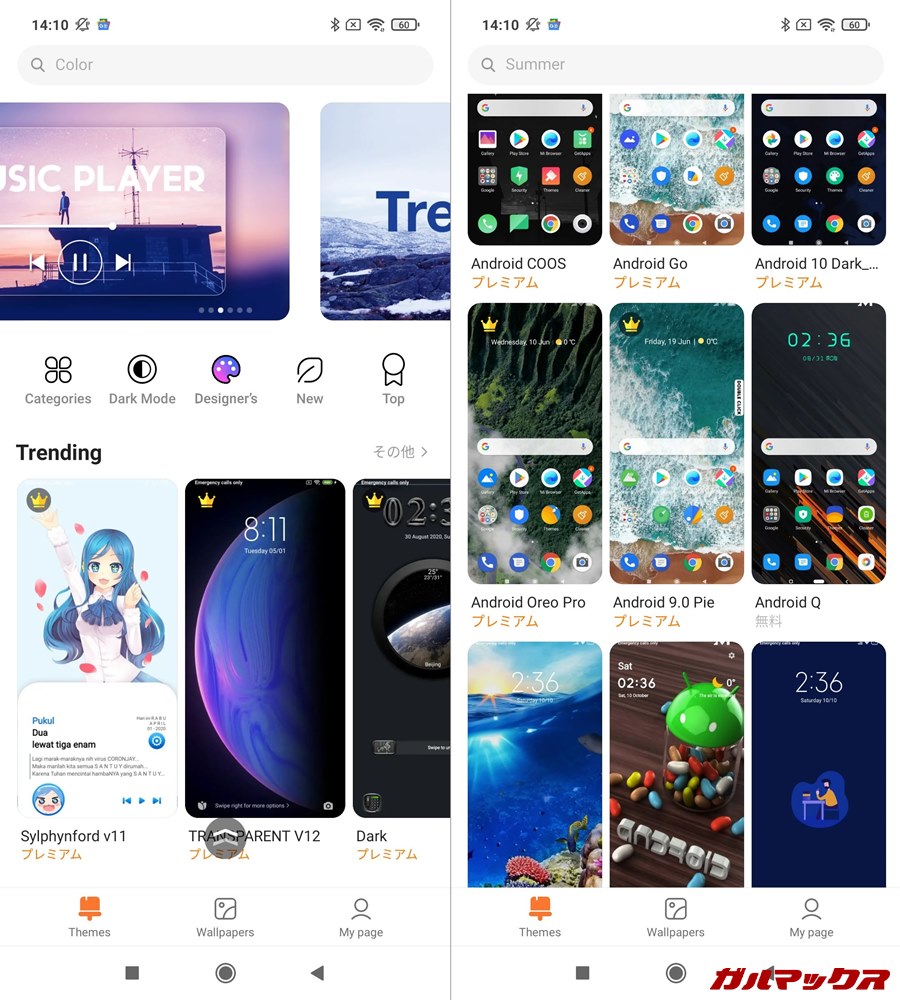▼テーマの変更自体は他の独自OS、ランチャーアプリにもあるんですが、MIUI 12に関しては群を抜いたテーマカスタマイズが出来るのが魅力的!純正OS風のテーマから、なんかどっかで見たようなテーマもたっぷり。↓