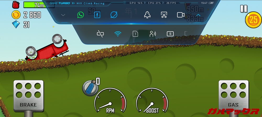 ▼対象のゲーム起動時は、左上に出ている半透明のバーを右にスワイプすることでゲーミングメニューにアクセスでき、メモリ解放や画面表示、フローティングアプリの起動といった便利機能が使えます!↓