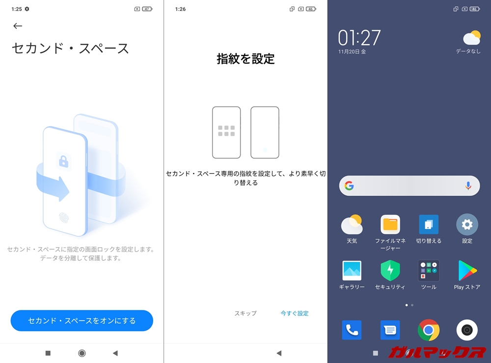 これを設定しておくことで、親や家族、浮気相手にスマホを盗み見られたとしても大丈夫。というワケなんす。通称「浮気モード」なんて言われるレベルで便利かつ安心な機能。MIUIの特権ですね!勝手にスマホを触ってくるふとときな連中を出し抜いてやりましょう(`・ω・´)。