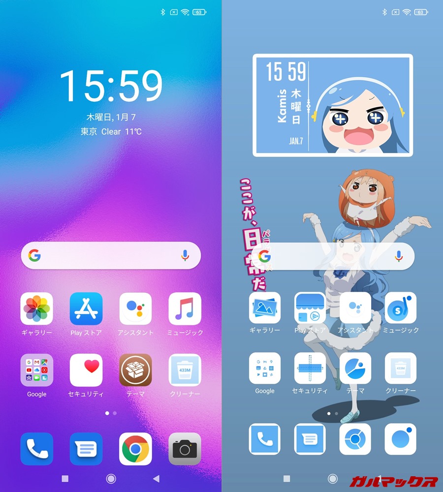MIUI、独自OSの中でも特にデザインにこだわっているのが特徴的で、壁紙やアイコンスタイルはもちろん、その動作アニメーションまでとってもグラフィカル。設定項目もあり、カスタマイズ性も豊富なのが特徴的です。とにかくこいつは個性の塊です。