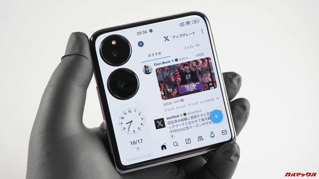 Xiaomi MIX Flipはサブ画面が巨大なので閉じた状態でも快適に操作できます。