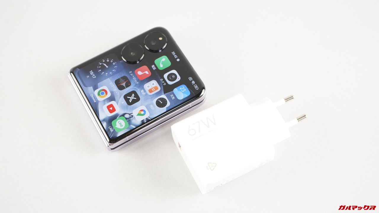 バッテリー容量は縦折りスマートフォンとしては大容量な部類の4,780mAhを搭載。ワイヤレス充電には対応していませんが、67Wの超急速充電には対応しています。