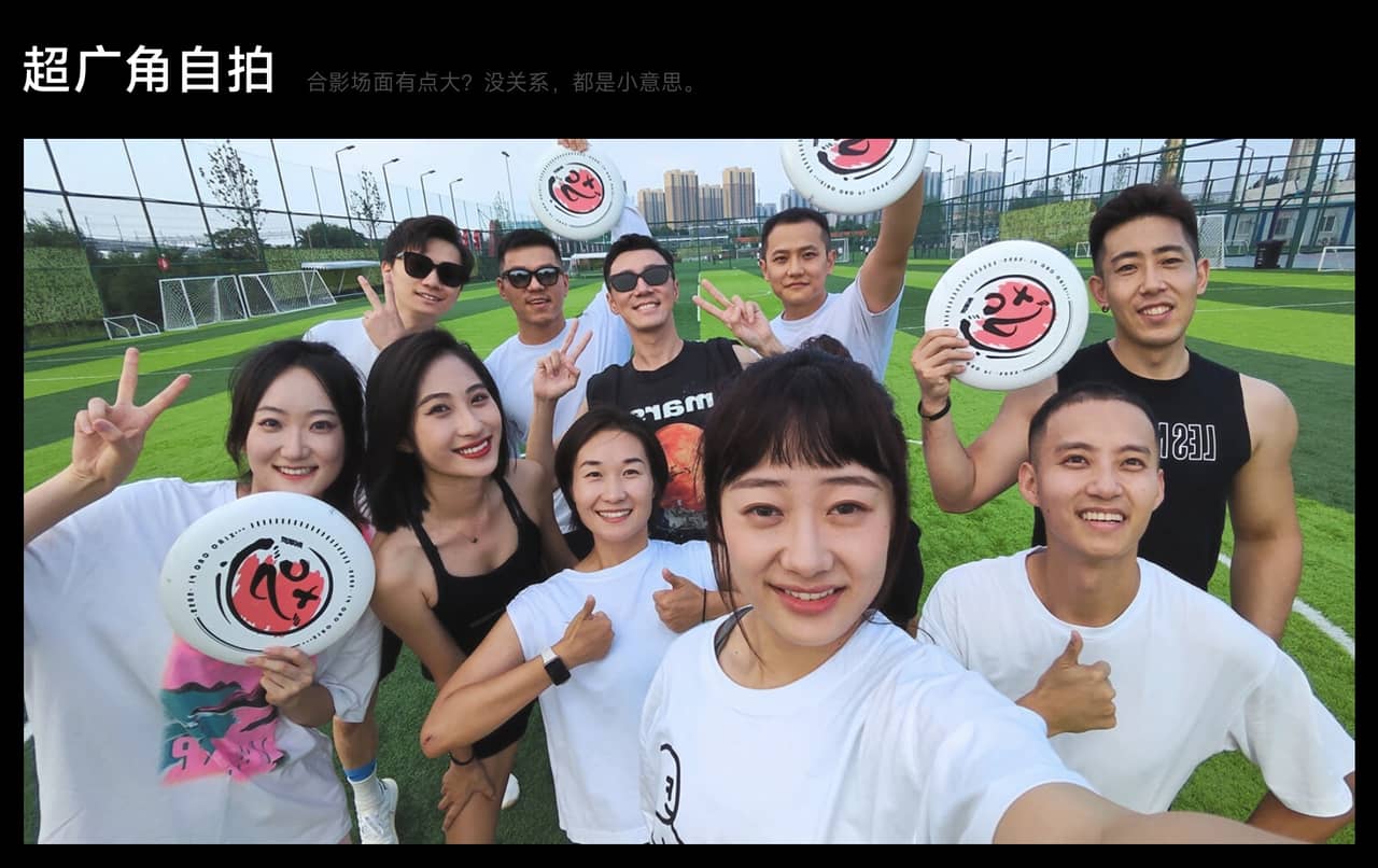 ▼Xiaomi MIX Fold 2を開くと外側画面がファインダー代わりに使えるので、超広角カメラを使った大人数セルフィーも余裕とのこと!↓