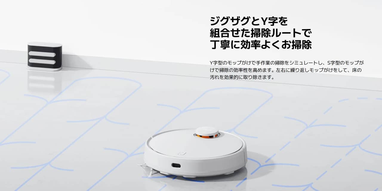 ▼あとたいていの掃除機ってこういう行ったり来たりでS字をひたすらえがいて掃除し進むってタイプなんですが、Xiaomi ロボット掃除機 S10はそれに加えて途中でY字のようにジグザグと進むんだそうです。↓