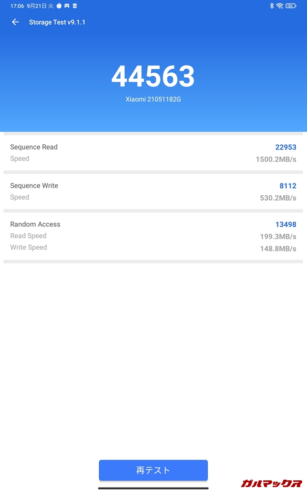 ▼ストレージ速度は読み込みが1500.2MB/s、書き込みが530.2MB/s。実際使ってて、アプリの起動速度は早かったです!↓