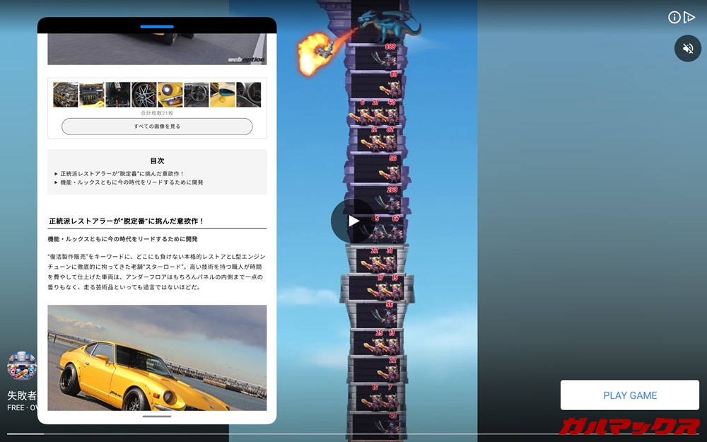 ▼さらに、大画面と相性抜群なフローティング表示にも対応!たとえばTwitterしながらブラウザ見たり、ゲームの広告再生中にブラウザ見て時間つぶしたりなんてことができちゃう(広告によっては別アプリ操作中は再生が止まることがあるので注意)!↓