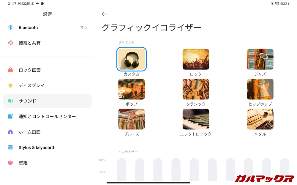 ▼好みに応じてイコライザーでの調節も可能です。↓