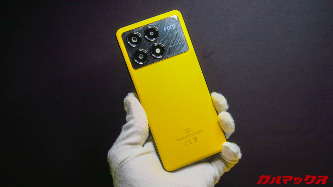 イエローは背面にヴィーガンレザーを採用するなど見た目的にも美しいモデル!中華スマホのハイコスパを体感したいならオススメではあるが・・・POCO F6が出たので結構迷うところではあるな…。